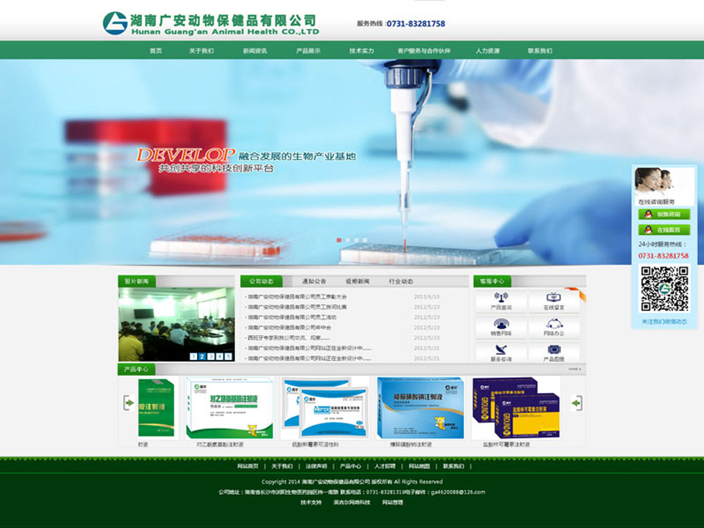 湖南广安动物保健品有限公司是一家集科研、开发、生产、营销及健康养殖技术咨询服务于一体的综合性高新技术动物保健品股份制企业;本公司创建于世纪之交的1999年,是湖南省农业产业化龙头企业——湖南鑫广安农牧股份有限公司控股的动保企业,公司坐落在环境优美的长沙国家生物产业基地浏阳生物医药园,占地面积20余亩,固定资产近2000万元;2006年顺利通过GMP认证,2011年通过GMP复检,公司拥有6个剂型的9条生产线。其中包括大型中药提取车间,处于湖南领先水平;公司致力于养殖事业,为客户解决各种疑难杂症,公司于2011年2月与省内行业权威机构湖南省畜牧兽医研究所共建了湖南鑫广安生猪疾病预防中心,是目前国内同行业唯一拥有高标准、高水平、高检测能力和分析能力、专业化独立的生猪疾病防控机构,为公司新产品研发和技术服务提供了科学的技术保障,为养殖行业保驾护航。公司现拥有规模化猪场28个,年出栏35万头,公司研发的每一个新产品都在猪场经过反复试验,确保效果后才会批量生产投放市场销售,保证了每一个产品的确切疗效。
