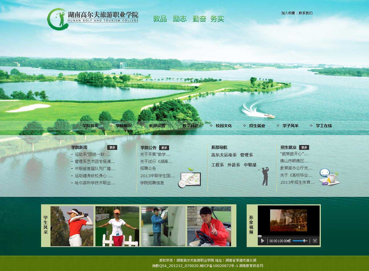 湖南高尔夫旅游职业学院是经湖南省人民政府批准、教育部备案的全日制全国统招专科层次的高等职业学院,也是全国唯一一所独立设置的以高尔夫旅游类专业为主的专业学院。学院位于湖南常德市东太子庙清水湖。